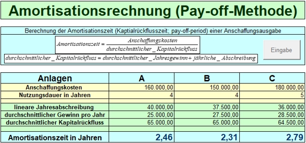 in die statischen Methoden der Investitionsrechnung, Durchführung einer