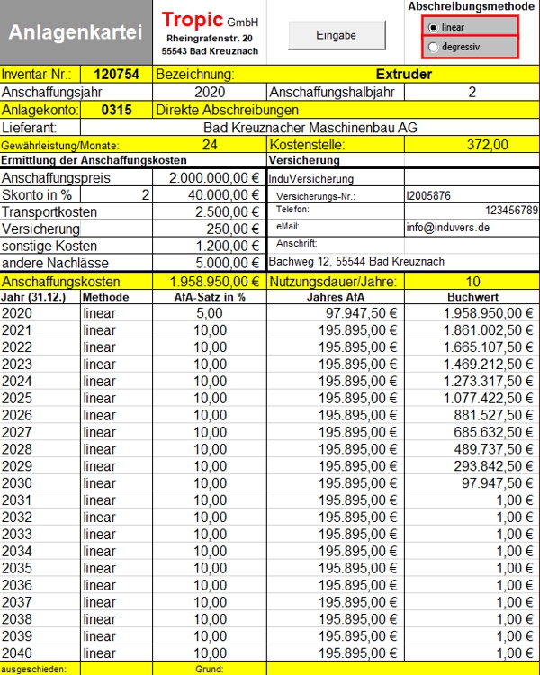 Erstellung einer Anlagenkartei, Anwendung der VBA- und Makroprogrammierung unter