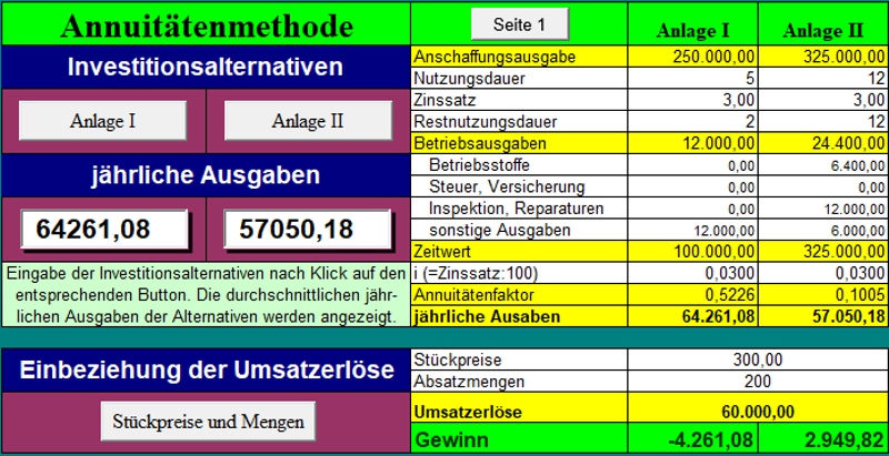 von Annuiätenfaktoren, Ermittlung von Gewinnen verschiedener