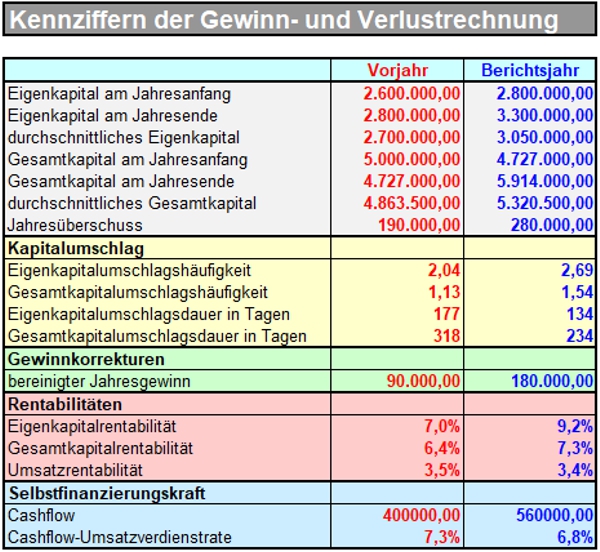 von Kennziffern zur Auswertung der Gewinn- und Verlustrechnung, Analyse der