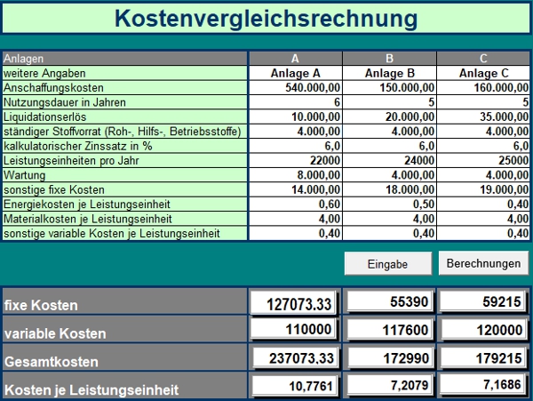 Kostenvergleichsrechnung, Anwendung der VBA- und Makroprogrammierung unter Excel