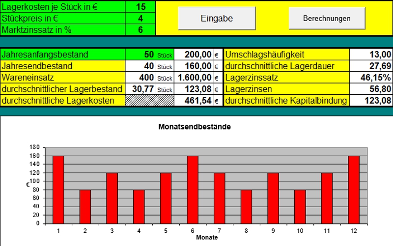 Berechnung der Lagerkennziffern, Erstellen von Grafiken, Anwendung der VBA- und