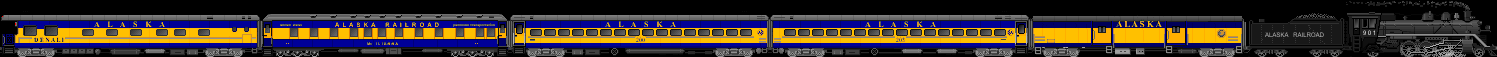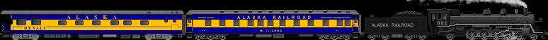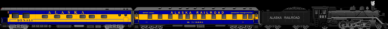 901 Pacific der Alaska Railroad mit Personenzug 313 Six-wheeler der Alaska Railroad mit