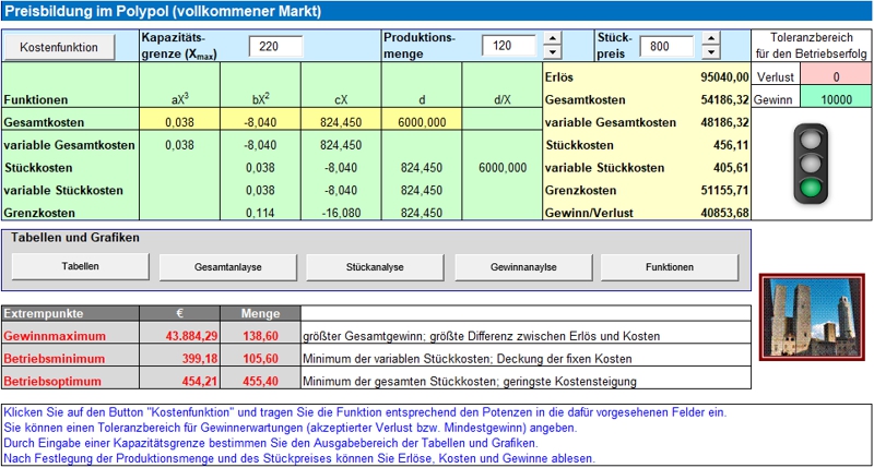 Punkten" (Gewinnschwellen, Betriebsoptimum, Betriebsminimum, ...),