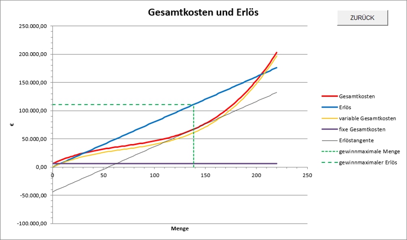 Gewinnen bei bestimmten Stückpreisen und Absatzmengen, Ermittlung der gewinnmaximalen Preis-Mengen-Kombination, Ermittlung von "kritischen