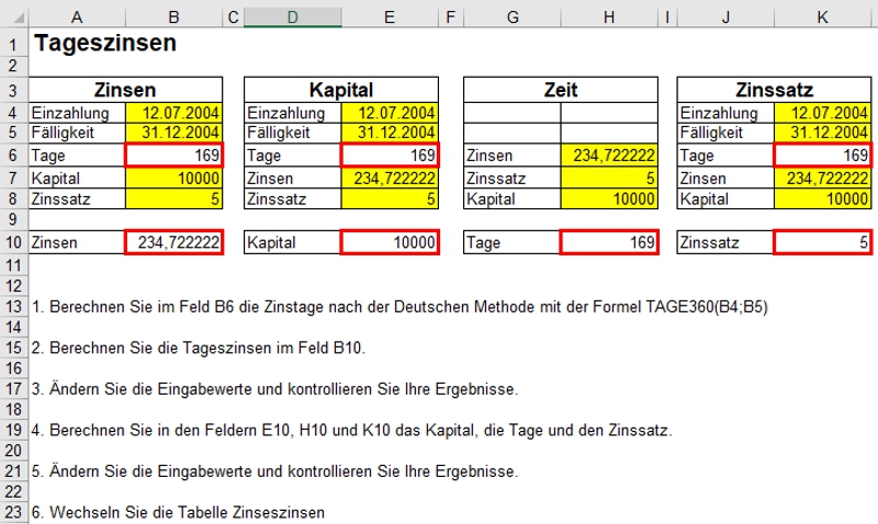 Laden Sie die Excel-Tabelle und führen Sie die Berechnungen zur Zinsrechnung